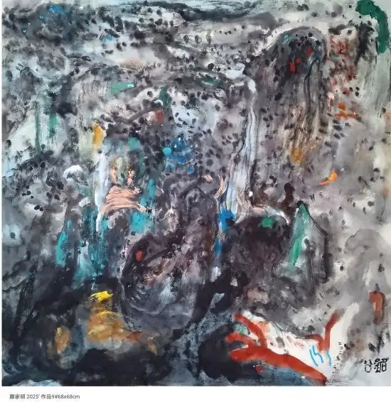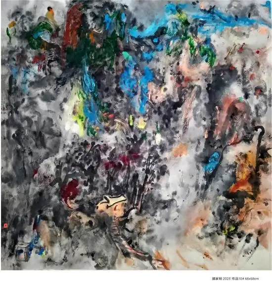 对于滕家明先生而言,《山花烂漫》的成功拍卖,是其艺术创作生涯的一个重要节点。这幅创作于2025年的新作,凝聚了他多年来对水墨语言的探索与实践。他的作品始终扎根于中国传统美学,却又不囿于古法,在色彩运用、构图形式上大胆创新,试图用当代的艺术语言诠释自然之美与生命之力。《山花烂漫》中,看似随意的色彩泼洒与线条勾勒,实则是艺术家对“山花”这一意象的精神提炼——它不仅是自然景物的描摹,更是对生命蓬勃生命力的歌颂,这种跨越文化的精神内核,正是其能打动海外藏家的关键。