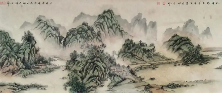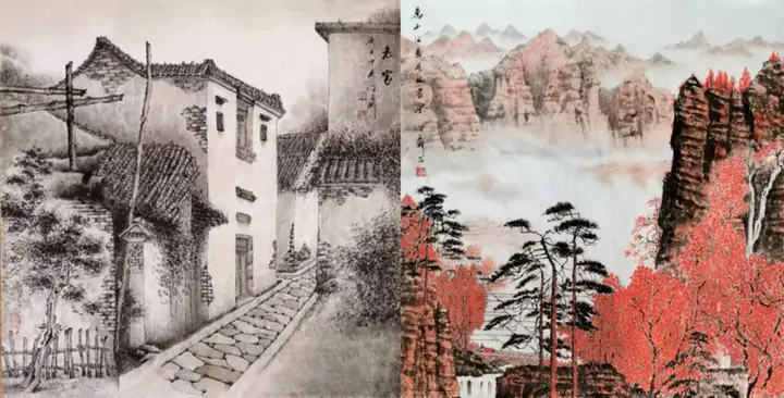 山水画:以书入画,笔墨苍润相生,构图虚实呼应,融宋人骨力、元人逸气于现代审美视野之中,营造出既承古意又具新境的山水意象。